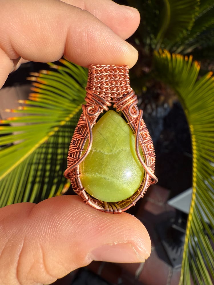 This beautiful green opal is wire wrapped in copper wire, will come with an 18inch suede leather black chain