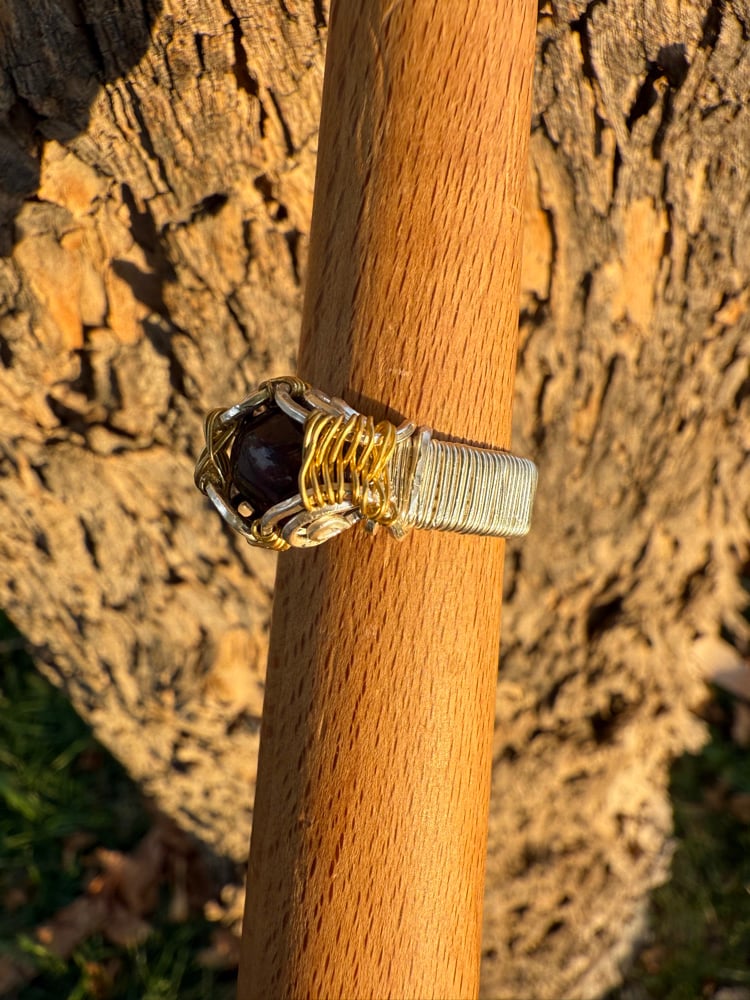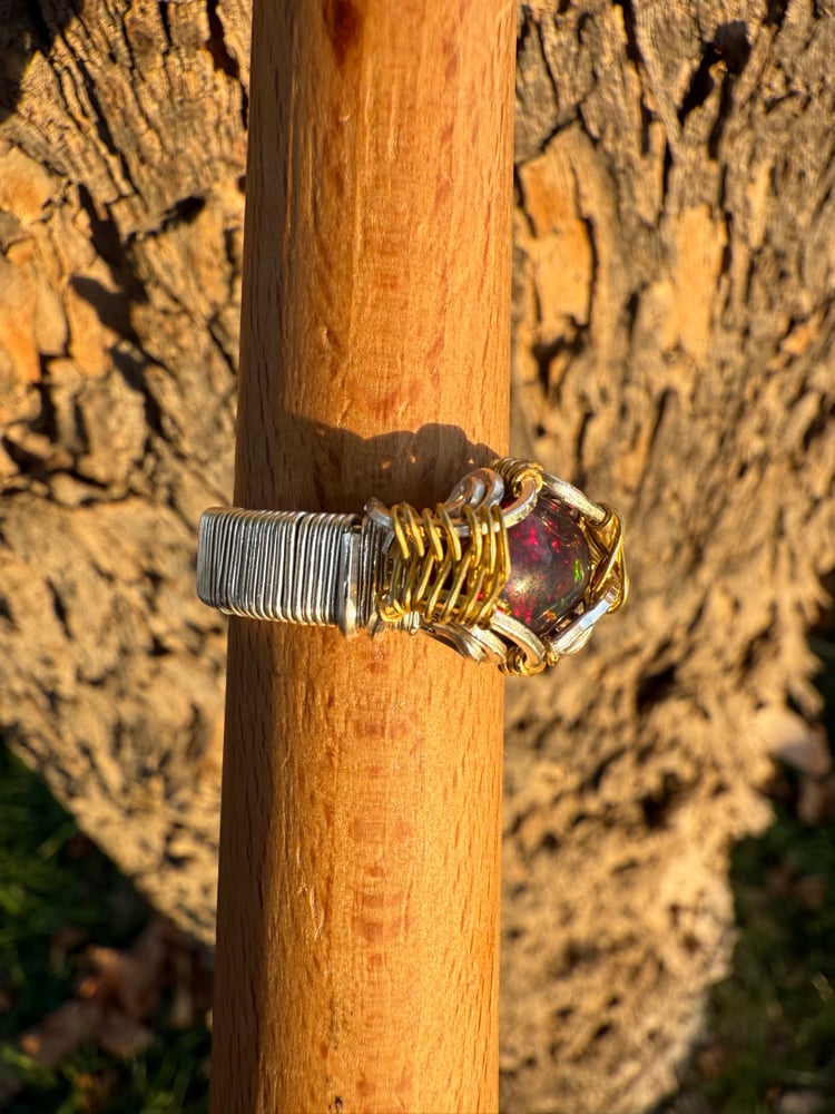 Smoked Ethiopian Opal wire wrapped in sterling silver wire with accents of brass wire